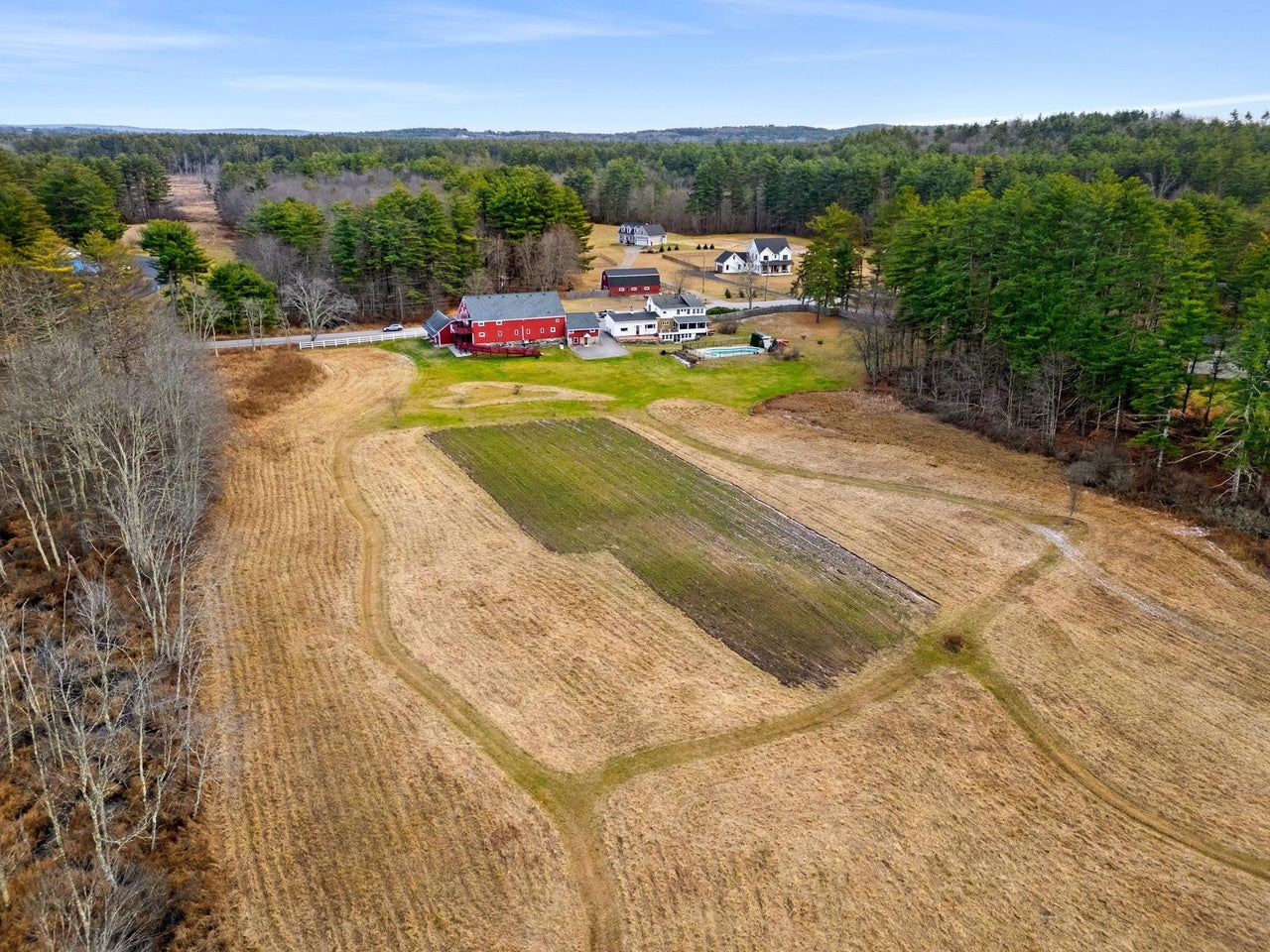 The 14 acre lot with white house and big red barn are what remain of the original farm.