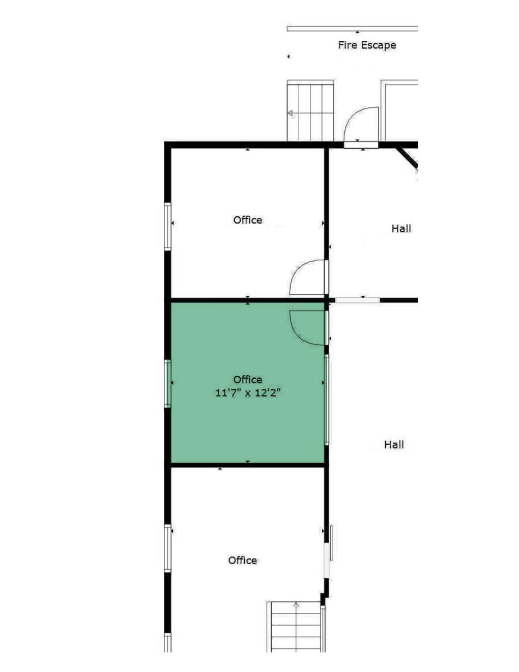 LF4 is approximately 140 SF with ample natural daylight and a viewing window into the hallway. Located close to the private entrance via the rear fire escape for privacy, blended with accessibility for clients.